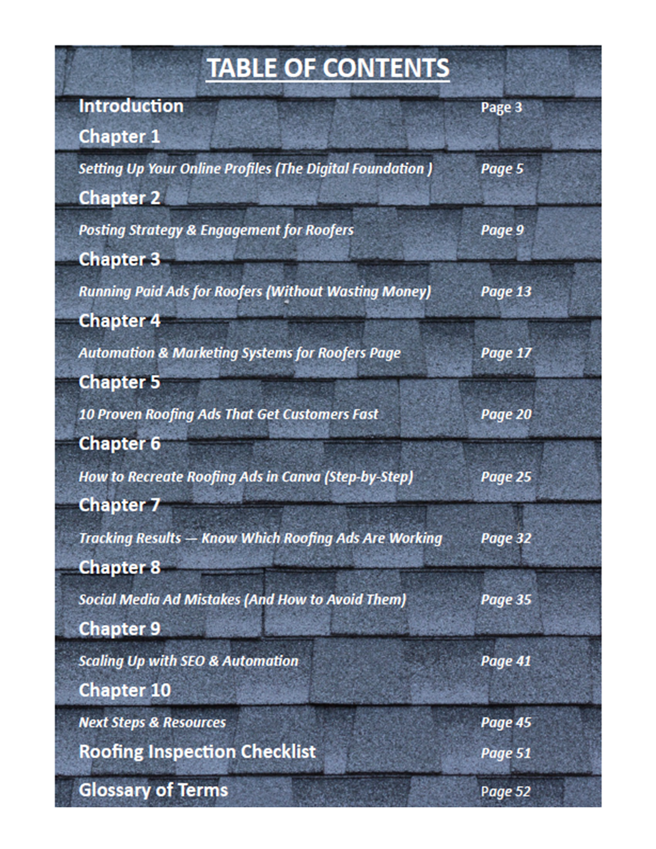 This beginner-friendly eBook was created specifically for roofing contractors who want a proven system that saves time, money, and increases revenue — without needing tech skills or an agency.